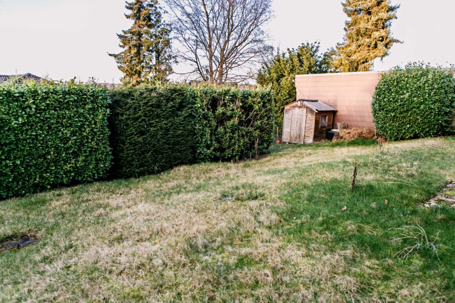 Das Grundstück ist gepflegt angelegt und bietet neben attraktiven Grünflächen auch ausreichend Privatsphäre. Eine Garage direkt am Haus sorgt für komfortables Parken und zusätzlichen Stauraum.